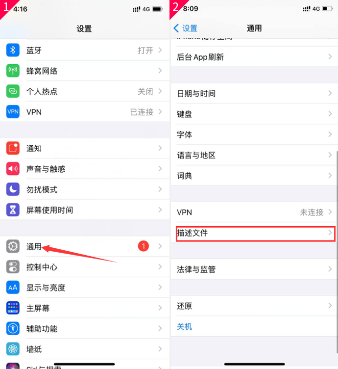 1.进入加速器桌面,点击安装线路,然后允许。 2.进入手机设置,下滑找到通用选项,点击描述文件。 3. 安装描述文件;点击已下载的描述文件进行安装完成选项。 4.安装成功之后,返回设置界面点击VPN,选择测试线路点击连接即可使用。 您的浏览器不支持video播放